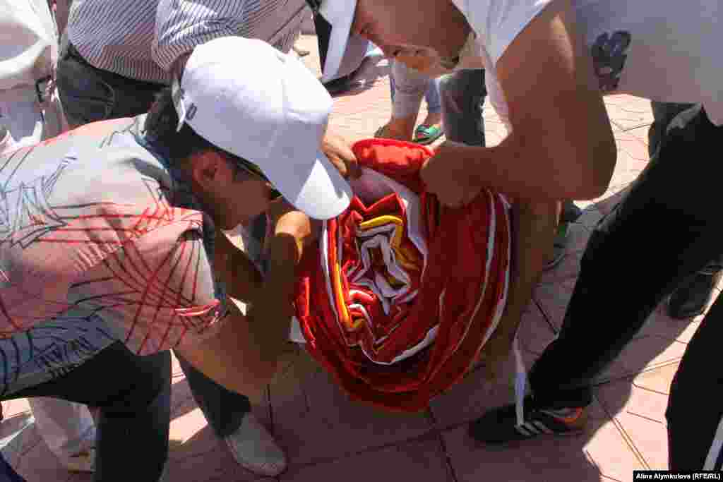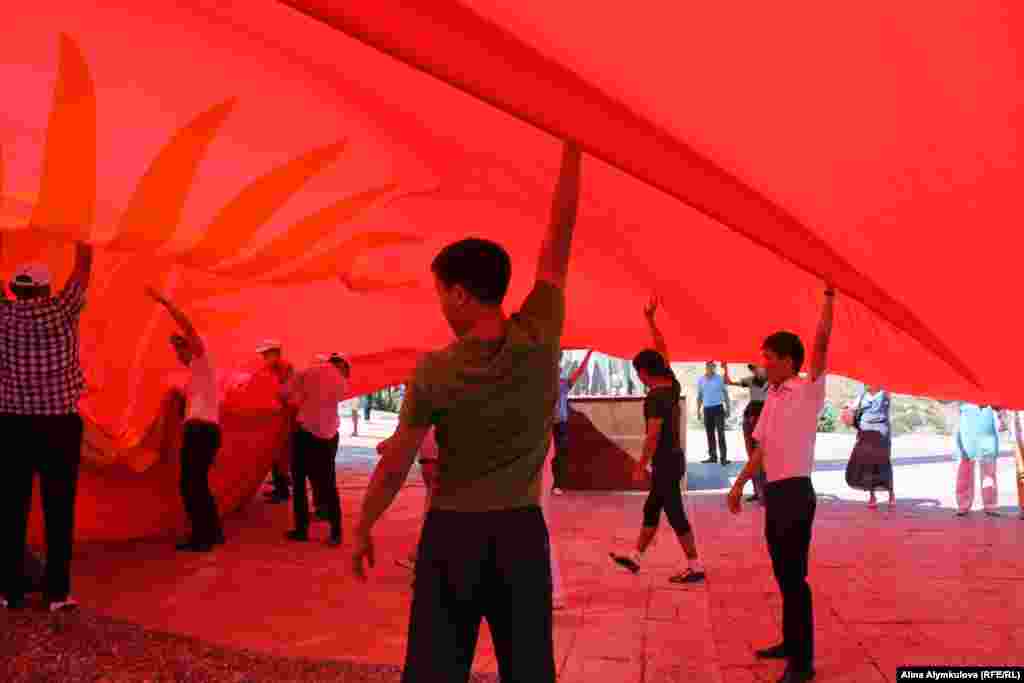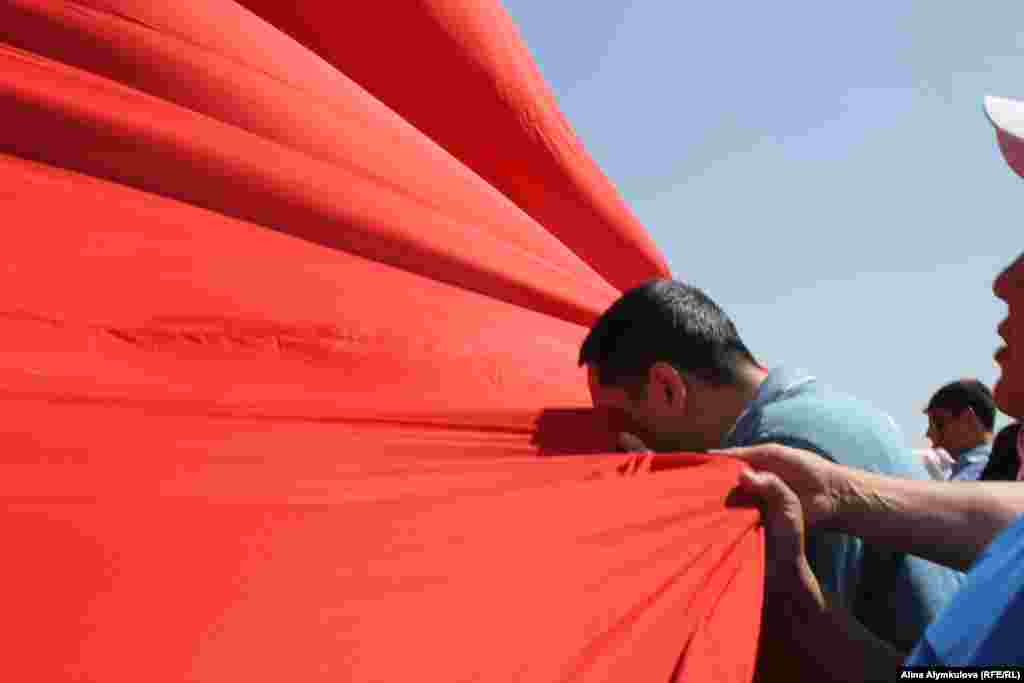 На горе Боз-Болток на южной окраине Бишкека 24 июля, заменили самый высокий и большой государственный флаг Кыргызской Республики. Мероприятие прошло при поддержке экс-премьер-министра КР Омурбека Бабанова. Новое полотно обошлось в 3 500 тысячи долларов и было изготовлено в Турции. "Азаттык", Кыргызская служба РСЕ/РС
