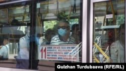 В общественном транспорте в Бишкеке, в общественных местах везде напоминают о правилах ношения масок, но мало кто выполняет эти требования.