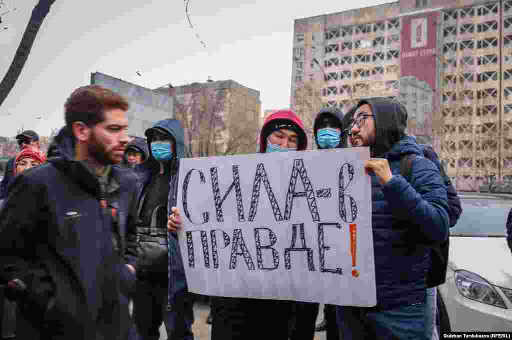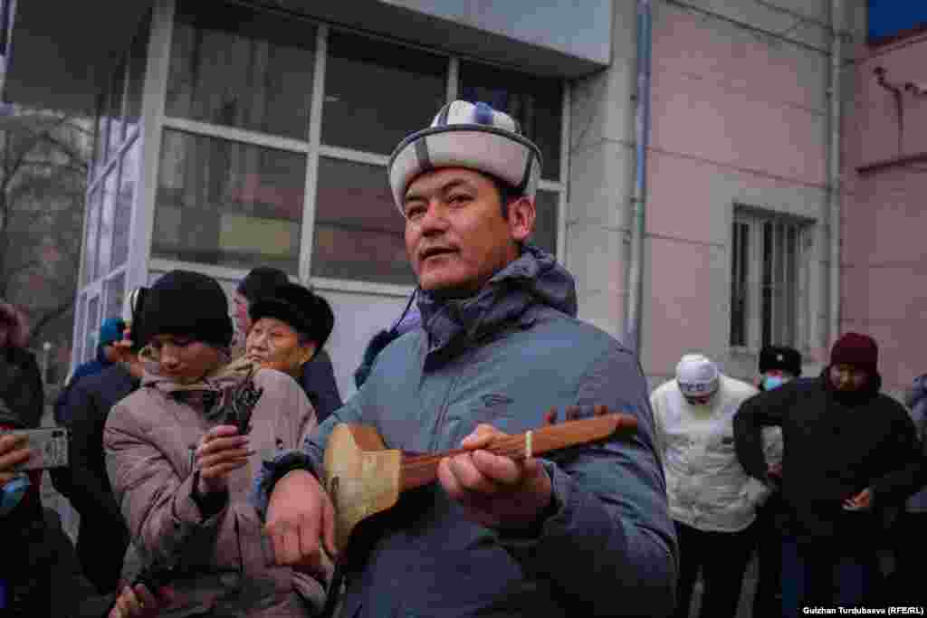 Утром 23 января в защиту Темирова и Назарова активисты и акыны провели акции протеста. Корреспондент «Азаттыка» запечатлел самые яркие моменты дня.