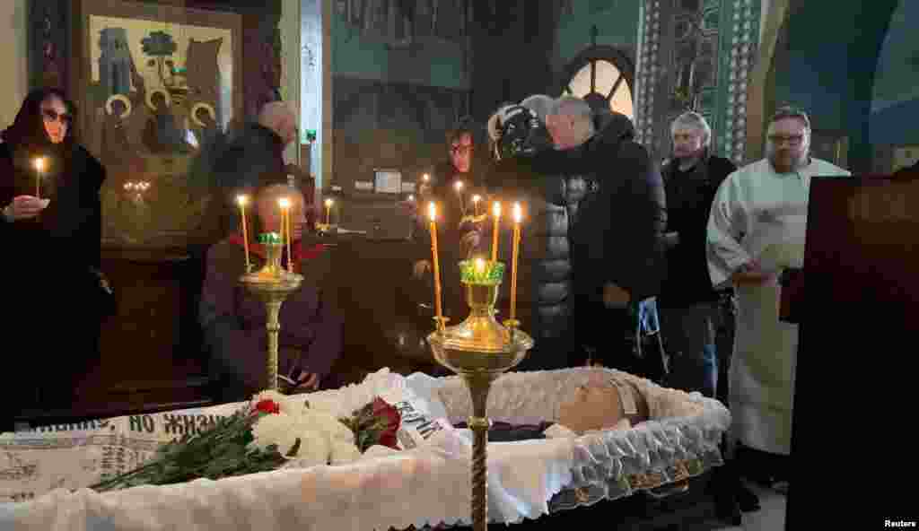 Проститься с Алексеем Навальным пришли тысячи людей, они стояли в очередях на улицах и во дворах на подходах к храму. Пришедшие люди скандировали лозунги: «Нет войне», «Не забудем», «Не простим», «Ты не боялся, и мы не боимся», «Путин – убийца» и «Россия без Путина».
