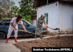 Арууке Акибаева тренируется. Село Каба, Базар-Коргонский район. Photo: Gulzhan Turdubaeva (RFE/RL)